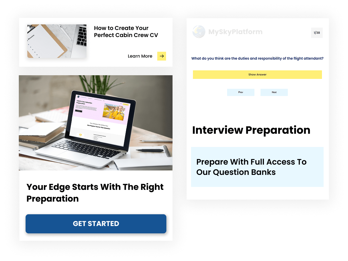 Want to become cabin crew but not sure where to start? We’ve got two clear paths to help you: one to prepare for airline assessment days, and another full course that takes you through the complete cabin crew career. Both are built with real airline insight so you can move forward with confidence.